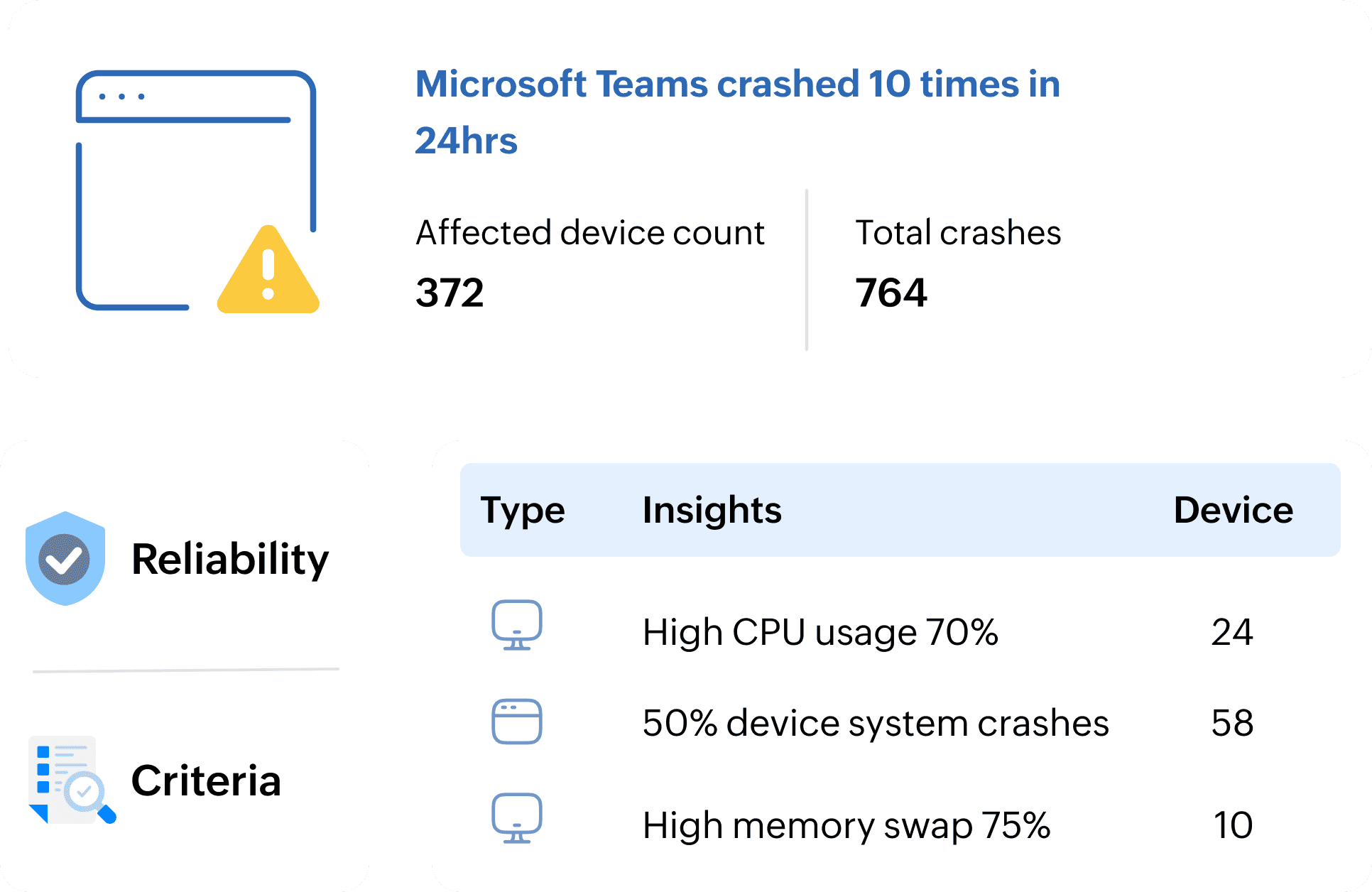 - Use organization-wide benchmarking to quickly identury outlier devices.