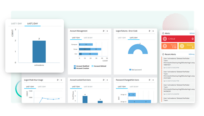 In a world of constant cyber threats, it is crucial to monitor logs and activities intelligently. Log360 uses AI and machine learning to automatically analyze data and provide IT teams with immediate insights.