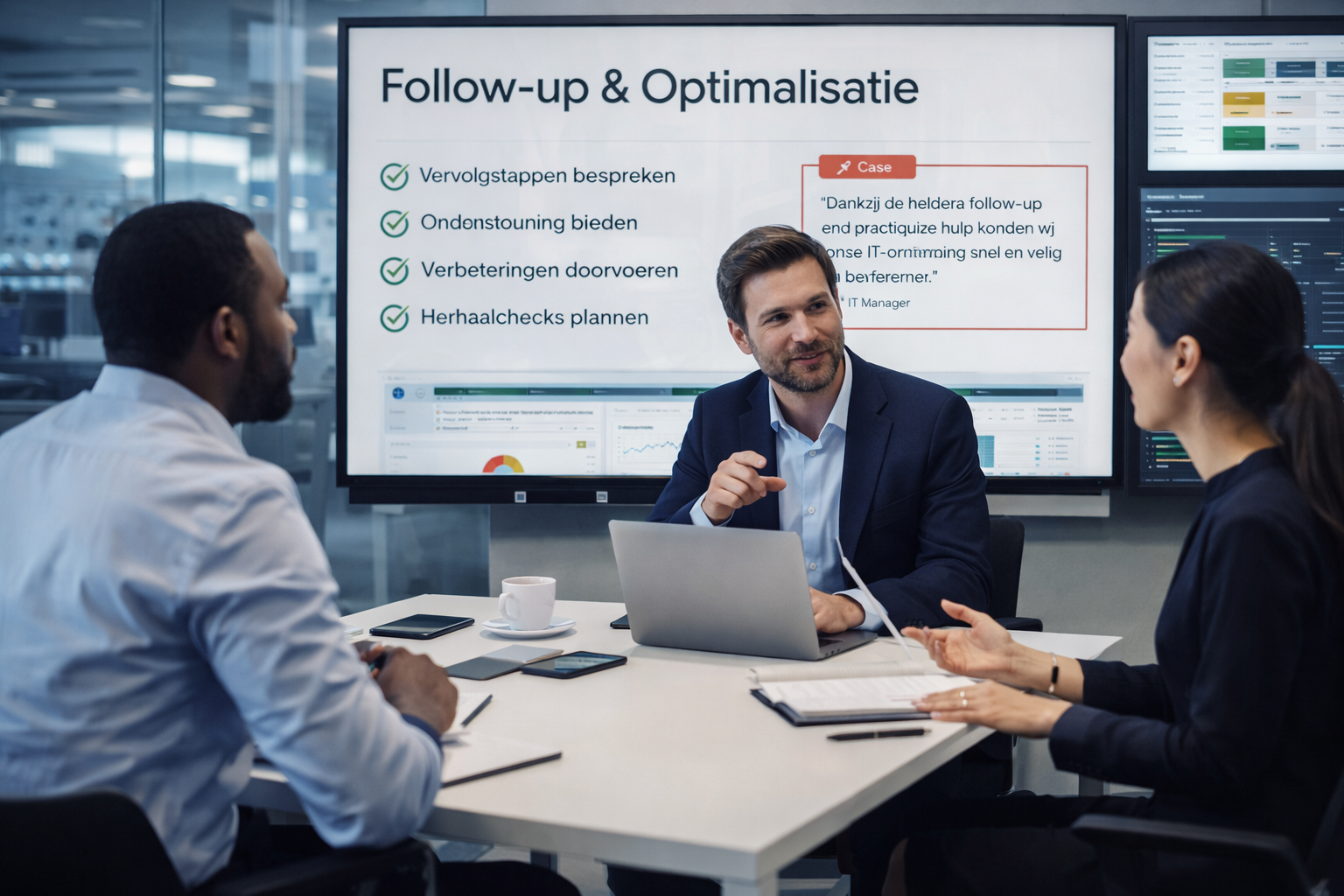 Een IT Health Check stopt niet bij een rapport. Daarom bieden wij altijd een duidelijke follow-up: